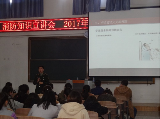 保卫处处长徐洪政首先介绍本次讲座的目的及意义。随后,宣讲员利用PPT向大家介绍了当前全国的消防安全形势,并结合近年发生的公共场所火灾案例,分析了学生在生活中存在的容易忽视的消防安全隐患。他用生动有趣的语言讲解了火灾初期的灭火知识、火灾的扑救程序以及火灾现场的自救技巧,并且与在在场同学进行互动,用实际行动告诉我们面对火灾,该如何逃生、自救、报警。