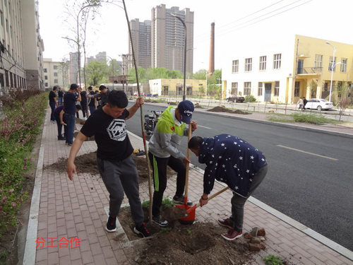 首先,大家认真听取绿化技术员的培训,掌握种树要领和要求,对植树成果充满了信心。植树开始后,大家配合默契,分工明确,有输送的、有吊线的、有扶树的、有挖坑的、有填土的、有踩实的,充分的展现出保卫处这支团结战斗队伍的风采!经过一上午的辛苦劳动,在大家的齐心协力下,共计植树33棵。看着植好的一排挺拔整齐的小树,仿佛一个个飒爽英姿的新兵,大家心里充满了喜悦和欣慰,默默祝愿小树茁壮成长,并表示将会一直关注自己亲手种植的小树,期盼着成为大树成荫的那一天,为校园增添绿色,为师生带来一片阴凉。